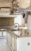 Un progetto di cucina tailor made tra il bianco perla e l'ottone brunito