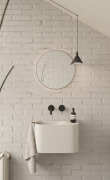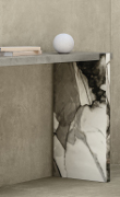 Arredi realizzati con le grandi lastre ceramiche nelle nuance della terra, del cielo e dell’acqua