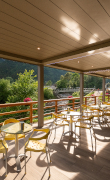 Le pergole bioclimatiche Opera e Brera proteggono l'ampio dehor con undici moduli