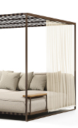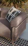 Una semplice struttura metallica in contrasto con i soffici cuscini
