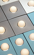 Elementi in ceramica smaltata pensati per creare sequenze lineari, griglie grafiche o mosaici dinamici. Il sistema di illuminazione Glowtile