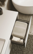 La ceramica incontra il Solid Surface nel nuovo mobile bagno rigoroso e minimale