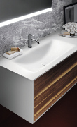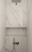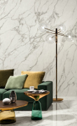 I rivestimenti si ispirano alla pietra, al marmo, al cemento e al metallo