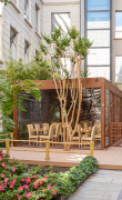 Quattro pergole bioclimatiche di diverse dimensioni per un dehors d'ispirazione giapponese