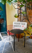I tavoli MX e le sedute Shade colorano le pause all'aperto del noto locale fiorentino