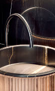Marmo, legno e luce dialogano con l'acciaio Black Diamond della rubinetteria Cross