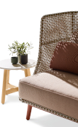 La poltrona Stay e lo specchio Tale: tratti semplici e interazioni materiche
