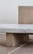 Volumi puri e sobri in marmo Bianco Carrara e pietra naturale Avana