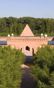 Tavoli e sedute trovano spazio nell ristorante e nel caffč del parco culturale di Franco Maria Ricci