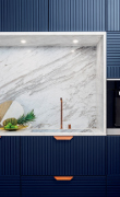 Separè, volumi minimal, tonalità indaco. La nuova collezione Lan