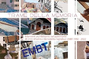 Trame della memoria presenta gli interventi architettonici di Enric Miralles e Benedetta Tagliabue realizzati nell’arco di trent’anni alla guida del loro studio EMBT in luoghi di grande rilevanza storica.
