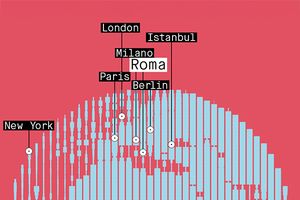 Attraverso proiezioni e infografiche, un modello su larga scala di Roma illustra ciò che si cela sotto le dinamiche spaziali, ambientali, sociali ed economiche di una città unica.