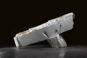 Quel “legame”, inteso come valore primario in una società contemporanea fondata su divisioni e contrasti, è rappresentato in mostra da un’unica installazione dal forte impatto spaziale dal titolo “Legami: Ties that Bind”. Ciascuna delle cinque sculture in marmo statuario bianco che la compongono – di diverse dimensioni, da elementi più monumentali (fino a 121×210×90 cm) a più raccolti (53×68×40 cm) – è costituita da due blocchi informi, tenuti insieme da cavi in acciaio inox che incidono profondamente la pietra e ne attraversano la superficie. Questi cavi generano una evidente tensione fisica e, al tempo stesso, alludono a un’idea di unità e interdipendenza.