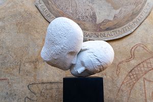 Nel continuo passaggio tra pittura e scultura, pieno e vuoto, corpo e ombra, il sacro non è mai didascalico ma profondamente umano, attraversato da fragilità e attesa. Le iconografie cristiane, private della loro funzione narrativa, diventano presenze simboliche essenziali, chiamando lo sguardo contemporaneo a una relazione diretta con l’opera. Così il dialogo con l’architettura e con i frammenti ad affresco trecenteschi e quattrocenteschi non è illustrativo ma strutturale, poiché lo spazio amplifica la riflessione e definisce una dimensione site-specific.