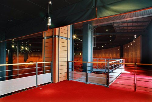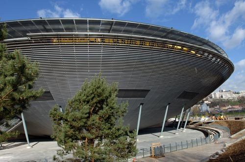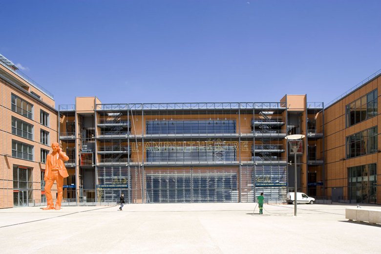 Struttura principale della Citè Internationale e nuova porta d’ingresso a nord di Lione, il nuovo anfiteatro è contraddistinto dal rosso delle tre facciate di terra cotta e delle tegole di zinco, e dalla leggerezza dell’alluminio.
