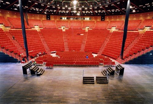 La sala dell’anfiteatro, un emiciclo scoperto di 180 gradi che si affaccia sul palco senza alcuna chiusura tra quest’ultimo, le quinte e le vie d’accesso, ricorda la configurazione di uno stadio o, come suggerisce lo stesso Piano, di un anfiteatro romano: “Mi sono ispirato al concetto di anfiteatro gallo-romano, nel quale la geometria consente una maggiore prossimità tra palco e pubblico”.