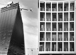 08/01/2007 - La fotografia, come interpretazione della realtà secondo il pensiero e i sentimenti di ogni autore, ha dato a questi ultimi due secoli (circa 170 anni) la memoria di una trasformazione della nostra vita in rappresentazioni di fotogiornalismo, reportage, paesaggio, architettura, moda, spettacolo, ritratto e cosi via….. Ogni fotografo sente la Vita e si esprime secondo la sua visione del mondo. Ben s'inserisce qui, in questa sua mostra personale al Godenda Photo Gallery di Padova, Sergio Bergami che, con le sue foto di architettura di esterni in bianco e nero, ci rivela i suoi pensieri, i suoi piaceri, le sue angosce sul paesaggio urbano di Padova, privo di ogni elemento umano. Dalla Torre Archimede, al Palazzo Inail, ai tetti del Palazzo Telecom, East Tower, ai palazzi della Provincia e all'Cinema Biri, Sergio Bergami discopre il suo ben e mal vivere attraverso un percorso cittadino in cui l'uomo non esiste più, è tagliato fuori dalla grande metropoli che, come tante altre, prende il sopravvento e s'impone angosciosamente sui ritmi umani.