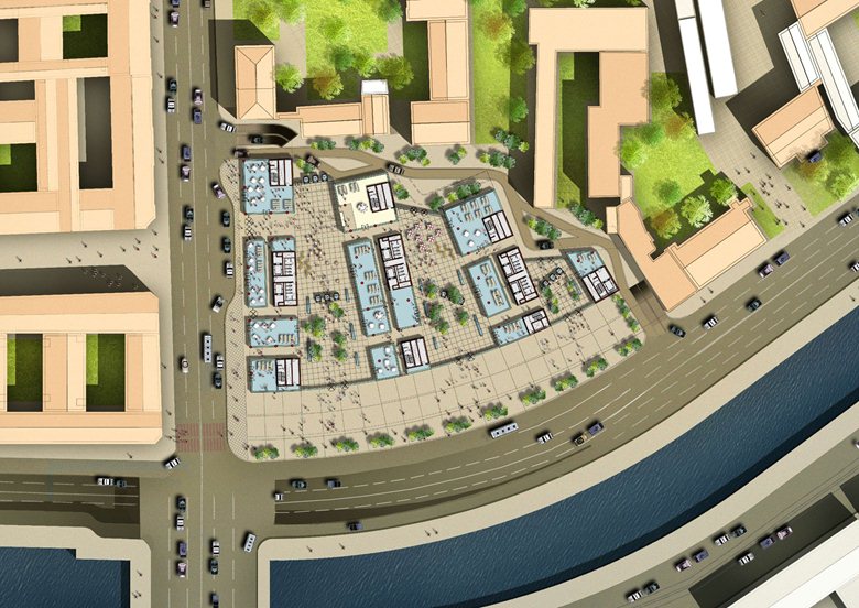 Ulteriori spazi sono inoltre destinati ad hotel e ad attività commerciali, “dando forma ad un progetto in grado di rimediare alla cicatrice dell’Hotel Rossiyaâ€.