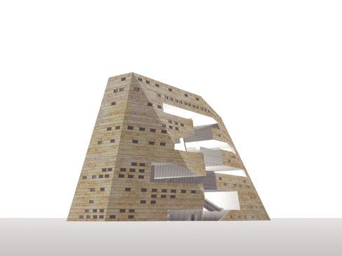 Allo stesso tempo snello ed elegante, grande e largo, in qualche caso una torre inclinata, qualche volta pressocché una piramide. Il blocco risultante è affusolato per apparire meno “grasso”. Verso la sommità l’edificio è più snello.