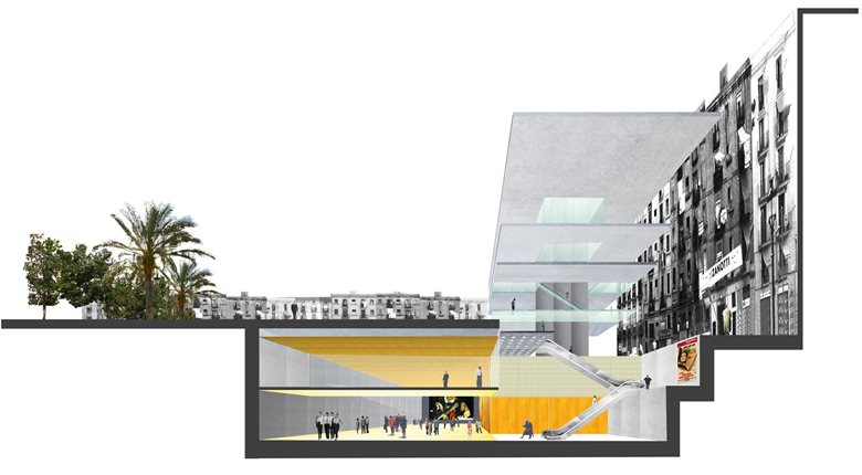La nuova cineteca sorge nella piazza Salvador Seguí, uno spazio pubblico che funge da luogo di ritrovo per eventi di grande rilievo.