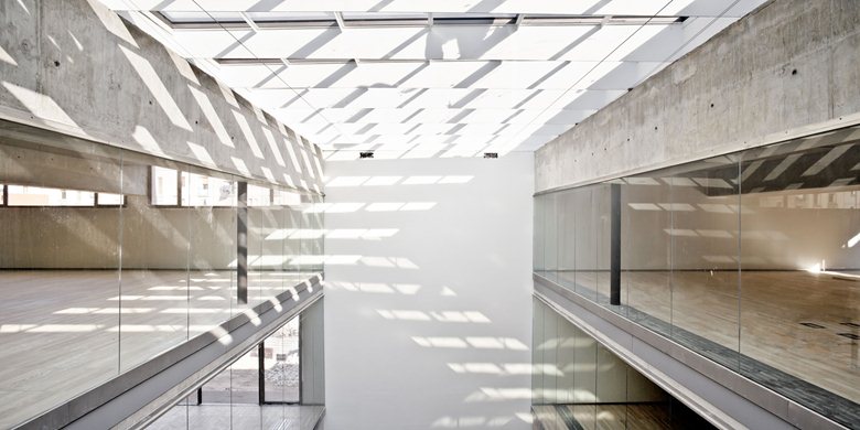 Il progetto è stato concepito come qualcosa a metà tra un edificio industriale e una struttura in costruzione; “pura tecnica quasi senza ultimazione”.