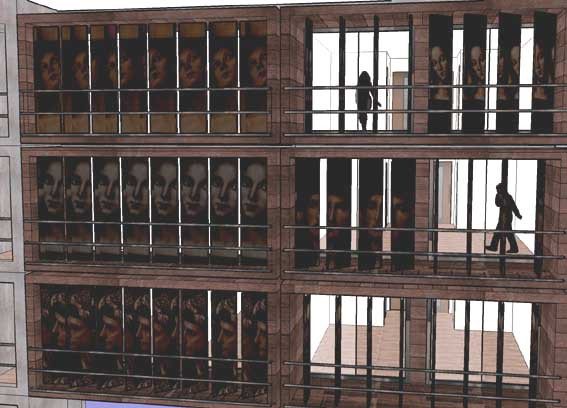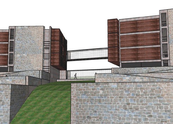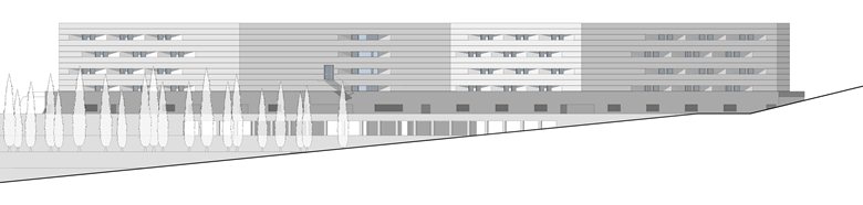 La scelta di porre a sud gli alloggi degli studenti, per le favorevoli condizioni di luce e di clima, ha generato un fronte smaterializzato e complesso per le sue dinamiche continue e differenziate.