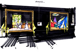 Per avvalorare questa idea, si è scelto di estrapolare il concetto ed utilizzare prodotti ceramici già in commercio per ricreare l'atmosfera di alcune famose opere pittoriche, trasformandole in ambientazioni in cui le due realtà - quella "artistica" e quella "industriale" - convivono in maniera sinergica. Non si tratta di pedisseque riproduzioni di opere d'arte, ma di originali interpretazioni artistiche giocate fra scenografia e trompe-l'oeil.