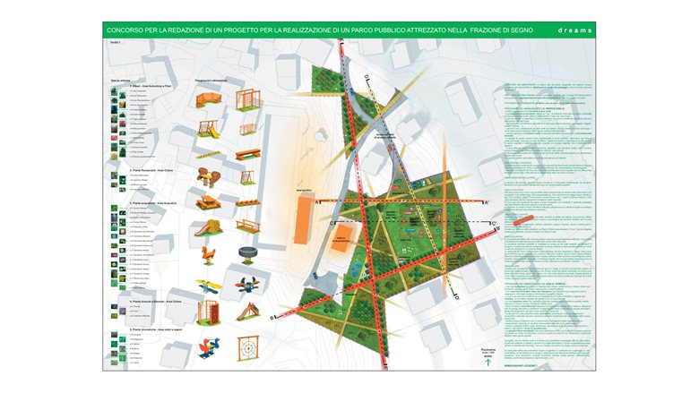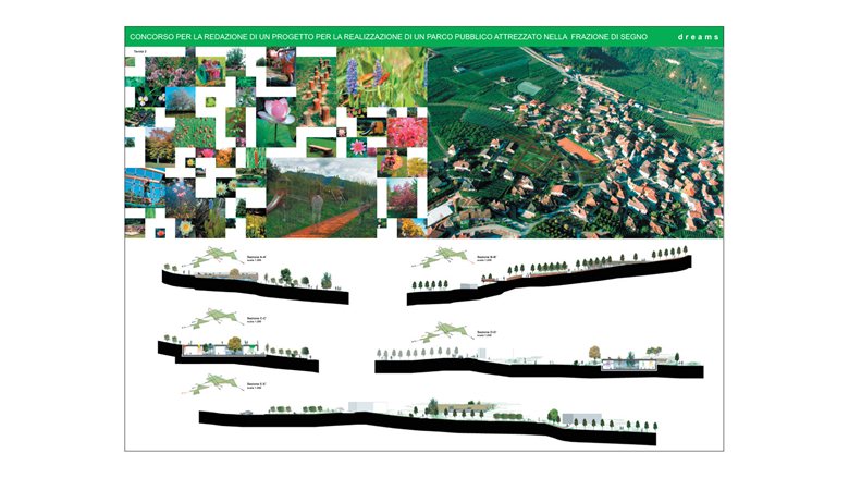 Il progetto “Dreams” vuole poter offrire alla comunità di Segno un giardino in continuità con il paesaggio e con l’architettura. Un’architettura dove vengono applicati i principi della bioarchitettura e del risparmio energetico: asse eliotermico, energia rinnovabile, energia solare passiva, raffrescamento naturale, comfort illuminotecnica, risparmio idrico, ecc.