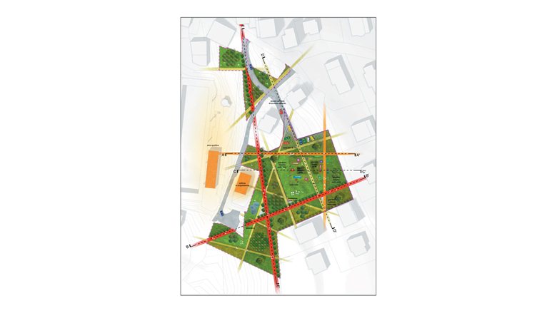 - i suoi percorsi che si incrociano, creano un “hub”, un elemento che mette in contatto e connette le aree circostanti (il centro storico, l’area sportiva, l’asilo) ed i suoi fruitori;