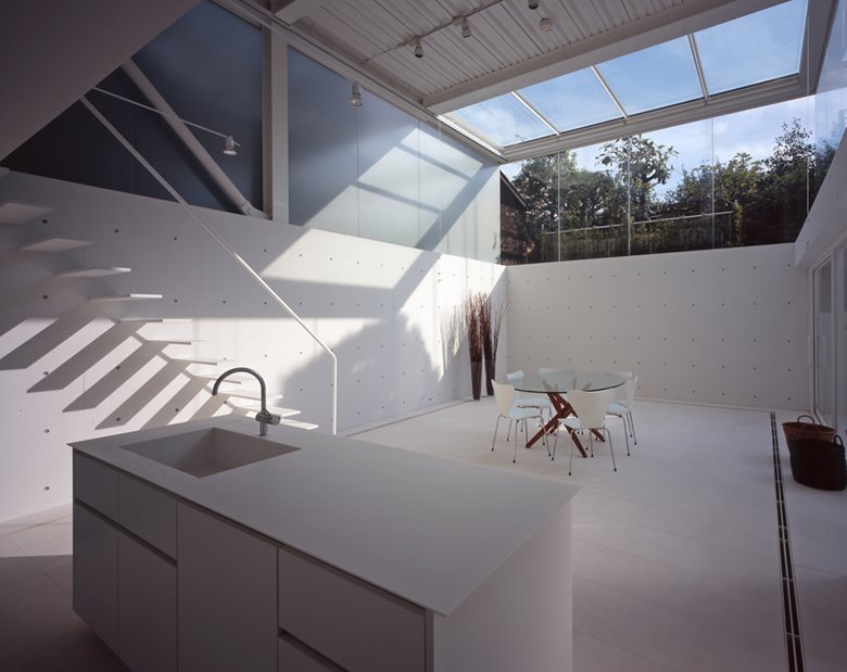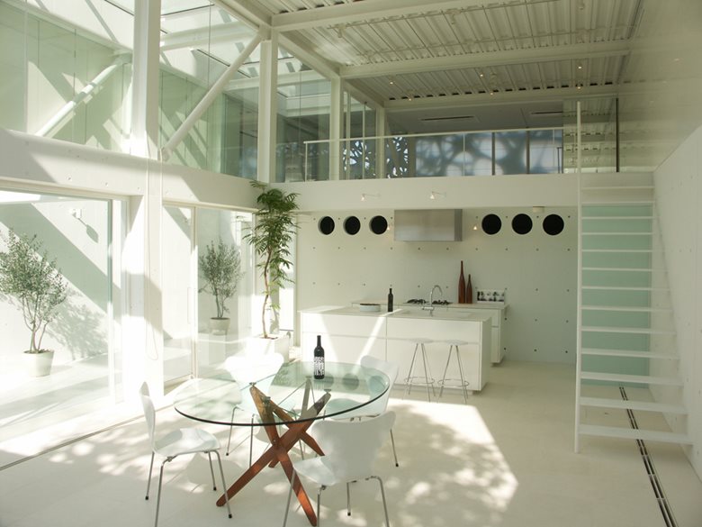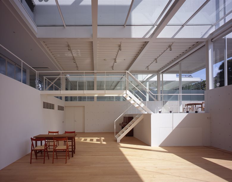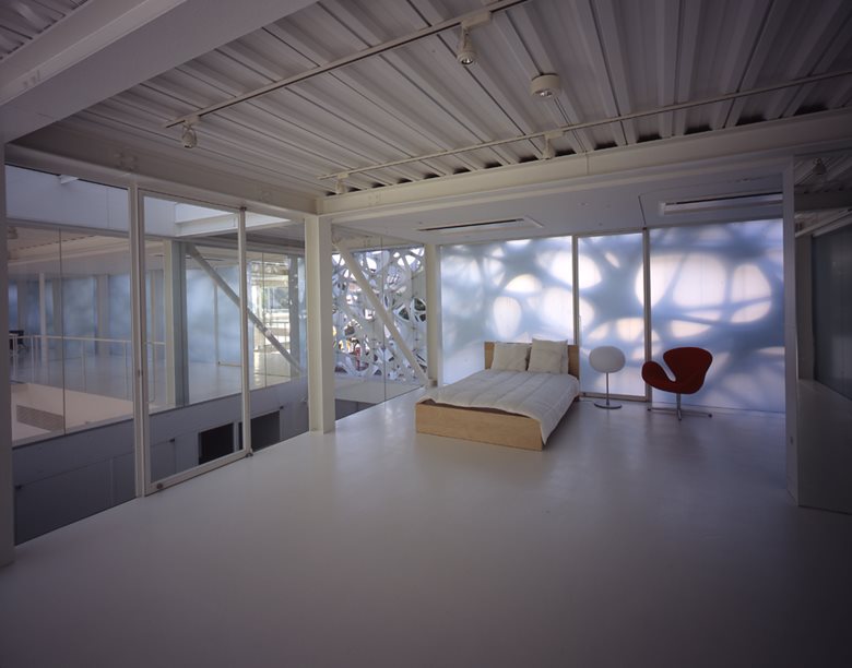 Airspace Tokyo si sviluppa su quattro piani all’interno dei quali trovano spazio due studi fotografici e quattro unità abitative. I due studi sono sistemati al primo e al secondo piano, in un’area a tutta altezza progettata come “programma aperto”, in cui la quasi inesistente distinzione tra interno ed esterno è accentuata dall’utilizzo di pareti e soffitti in vetro trasparente che offrono la sensazione di uno spazio sospeso all’interno di un “effimero spazio aereo di vetro e luce”.