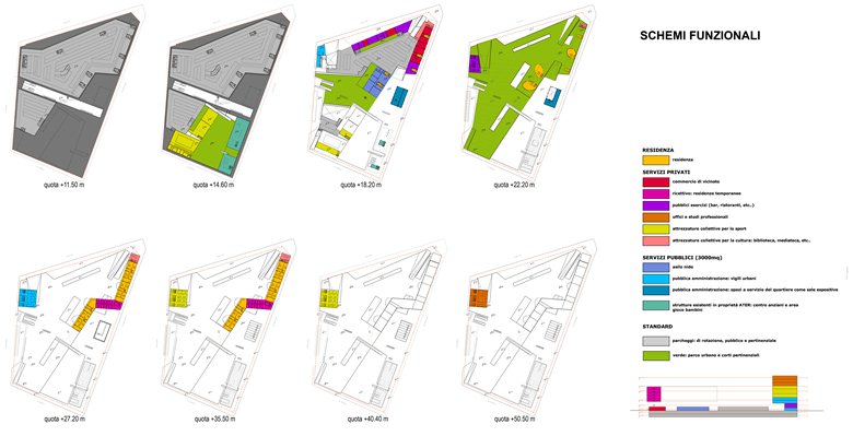 L’intervento proposto dal progetto vincitore si pone come priorità la densità delle relazioni piuttosto che la densità dello spazio costruito, relazioni che producano il senso di un abitare "felice"; per produrre densità di relazioni è indispensabile ripensare la città come città del vuoto e ripensare le potenzialità che i vuoti hanno di instaurare vari gradi di relazioni.