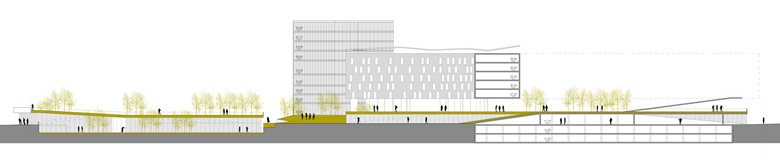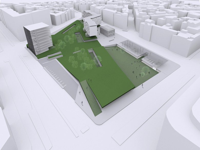 servizi contenuti nel parco – al di sotto del suolo del parco trovano spazio la maggior parte delle volumetrie previste dal bando per le attrezzature, i servizi e gli spazi commerciali.