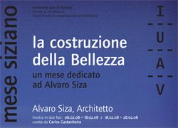 La mostra sarà aperta fino al 28 febbraio: sarà allestita in due tappe, la prima dedicata ai progetti residenziali (6-18 febbraio), la seconda ai progetti di edifici pubblici (18-28 febbraio). Nella circostanza della mostra lo Iuav desidera rivolgere all’opera di Alvaro Siza, protagonista dell’architettura europea degli ultimi decenni, una riflessione, articolandola a più voci e scandendola in più eventi, organizzando così una sorta di “mese siziano” , dal titolo “La costruzione della Bellezza: opere di Alvaro Siza” , promosso dall’Università Iuav di Venezia, dalla Facoltà di Architettura e dal Dipartimento di progettazione architettonica dello Iuav, curato da Serena Maffioletti e Attilio Santi.