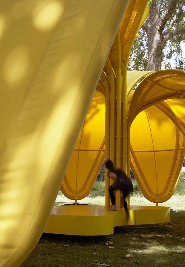 Ispirato al tema del Festival - FRESH! – fresh thinking, fresh talent, fresh approach, fresh air and fresh food – l’innovativo padiglione sfoggerà 11 petali di acciaio dai 2,7 ai 4,3 metri di altezza che si svilupperanno ad arco attorno ad un gambo centrale creando all’interno lo spazio per una piattaforma mobile.