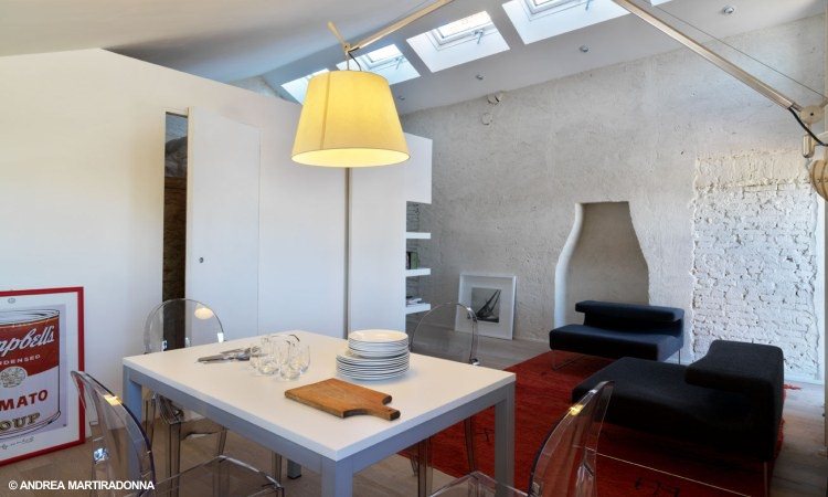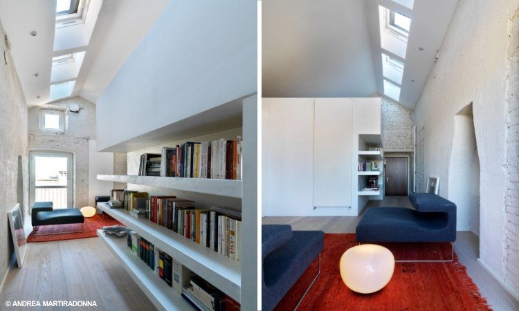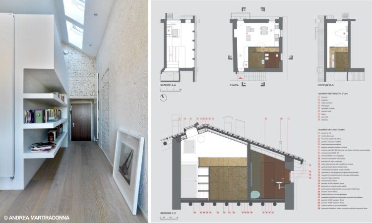 Per la categoria F - Sistemazione di spazi interni e design vincono l’ arch. Claudio Bonicco e Andrea Lo Papa (Studio 74) con il progetto Casa 1+1/2 “per l’ottimale riorganizzazione dello spazio minimo e la sensibile integrazione tra preesistenza e nuovo intervento”.