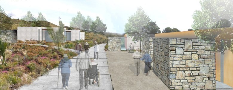Il progetto vincitore consente uno sviluppo futuro equilibrato e sostenibile con i nuovi edifici integrati nel paesaggio. Gli ospiti, anziani e disabili che attualmente risiedono lì o partecipano a programmi di soggiorno temporaneo, disporranno di un complesso che invita a godere degli spazi esterni e dei luoghi comuni.