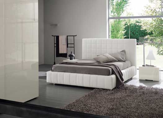 La testiera del letto caratterizza fortemente la camera da letto diventando un forte elemento d’arredo.