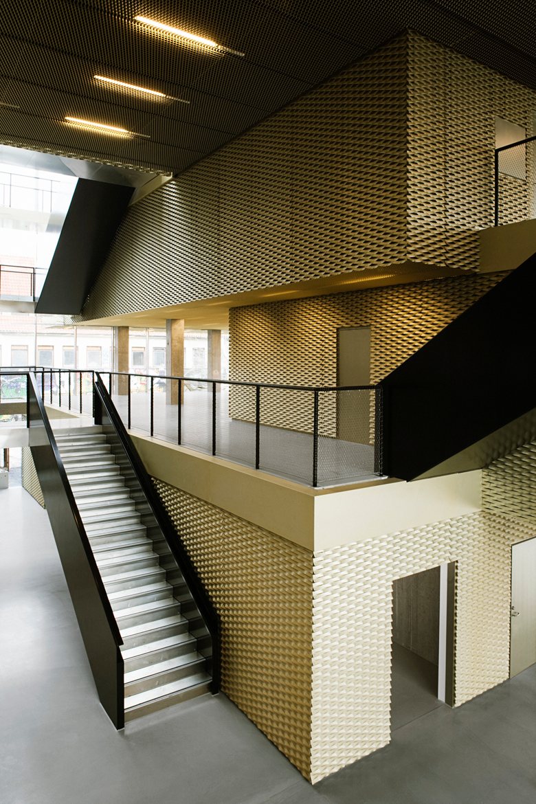 La geometria dinamica del complesso è basata sull’alternanza di spazi aperti e chiusi, occupati da biblioteca e funzioni fisse, ma anche da aree flessibili. Gli spazi aperti creano una relazione costante con il conteso urbano circostante; le aree chiuse, dove sono collocate anche attività dedicate ai più piccoli, creano un clima caldo e o raccolto, pensato per favorire l’apprendimento e la concentrazione. Sull’ultimo piano dell’edificio sorge il grande auditorium del centro, da cui poter godere di un’ampia vista panoramica sulla città.