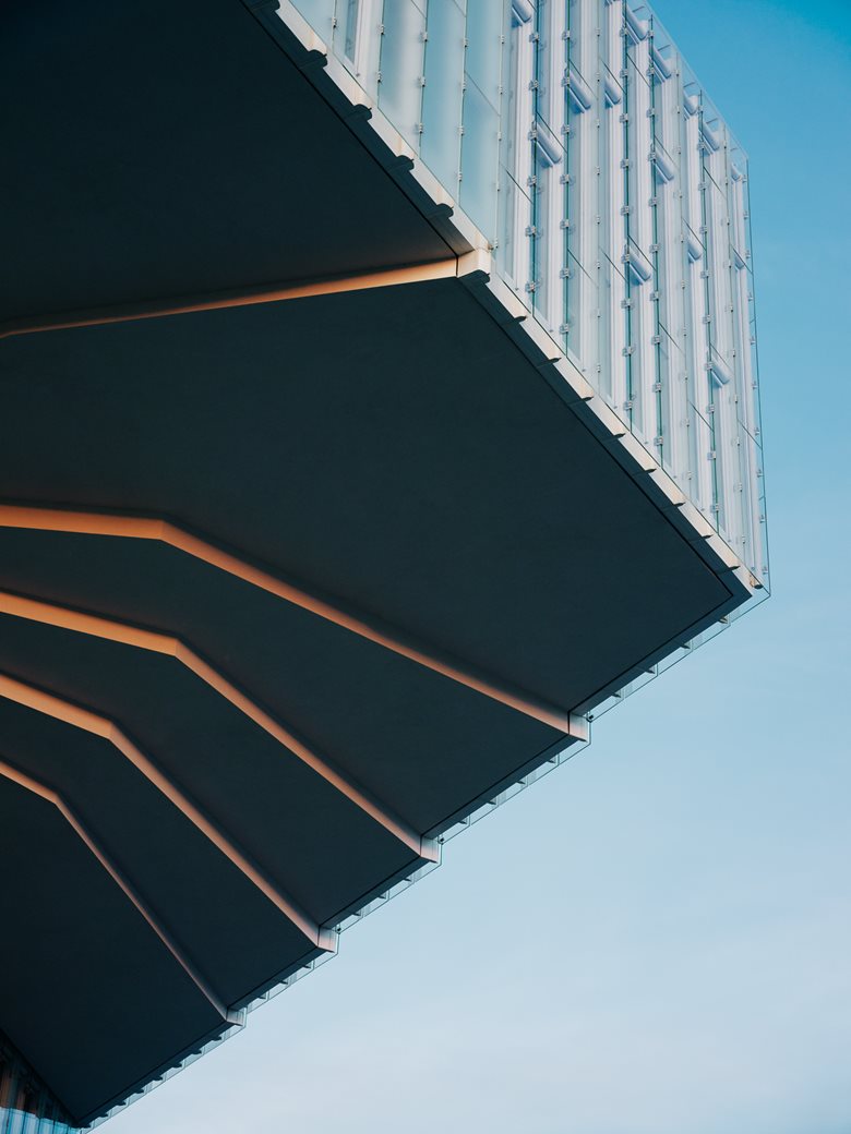 La pelle esterna dell’edificio è occupata per il 20% superfici trasparenti in vetro, mentre il restante 80% è rivestito da una superficie traslucida in nano-gel, altamente isolante, sulla quale sono applicati dei pannelli in vetro trasparente, pensati per creare un gioco di riflessi tra il volume e l’ambiente circostante.