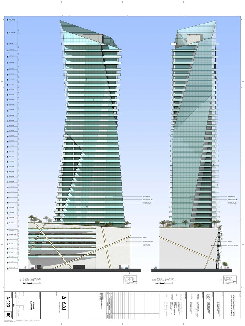 Il progetto mira a migliorare il carattere e la funzione della zona pedonale su questo sito. Lungo Figueroa Street la base è in posizione arretrata rispetto alla linea di proprietà per consentire la creazione di maggiori spazi pubblici all'aperto, sotto forma di una piazza-giardino. Quest’ultima fungerà da ingresso principale alla zona commerciale del progetto e come ingresso diretto dal piano terra a ristoranti e spa.