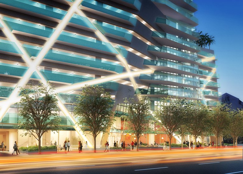 I nuovi programmi commerciali previsti nella zona basamentale della torre contribuiranno ad animare la vita lungo Figueroa Street.