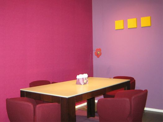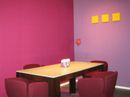 Alcune pareti del Corian® Design - Milano Store sono state avvolte dalle carte da parati Jannelli&Volpi: Rhinoceros , con segni grafici ripetuti, ON ON sui toni dell’azzurro  e JV501 sui toni del lilla, del brand JV Italian Design.