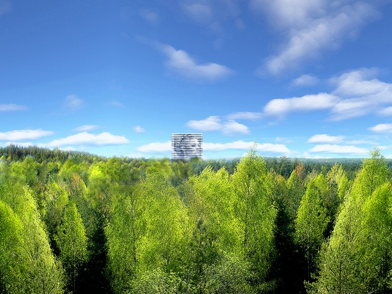 L’edificio, a pianta triangolare equilatera, crea un edificio con tre sole facce percepite come superfici bidimensionali free standing. Il centro congressi e la lobby sono immerse nel paesaggio, lasciando l’albergo in una sorta di piccola oasi nella foresta svedese, fra l’aeroporto cittadino, i parcheggi e le infrastrutture.
