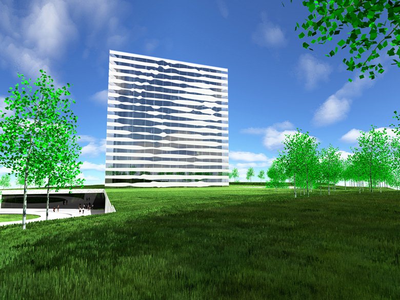 21/12/2009 - L'edificio VMCP dello studio BIG - Bjarke Ingels Group è un hotel e centro conferenze, ubicato direttamente sulla strada principale per Stoccolma, che sorgerà nel 2011 presso l'aeroporto di Arlanda. Una piccola variazione nella banda orizzontale della finestra di ciascuna delle 600 camere, crea un pattern astratto che visto a distanza si trasforma nei ritratti crystal clear della Principessa Victoria, della Principessa Madeleine e del principe Carl-Philip di Svezia.