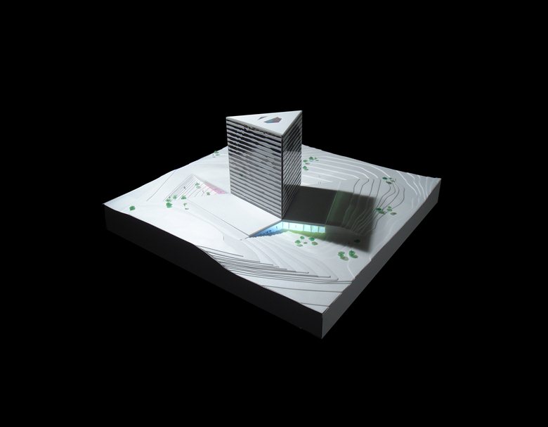Al centro della costruzione vi è una serie di executive meeting rooms che sembrano sospese nell’atrio esagonale, creando una visione caleidoscopica dalla hall verso il cielo.