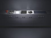 Le manopole di regolazione in acciaio massiccio posizionate sul pannello frontale sottolineano il rigoroso linguaggio formale. Per la prima volta gli apparecchi speciali come il grill elettrico, la piastra Teppan Yaki, la vaporiera o la friggitrice possono essere abbinati secondo il proprio gusto e desiderio con i piani cottura a gas o a induzione da 38, 60, 80 o 90 cm, andando a creare un’unità estetica perfetta.
