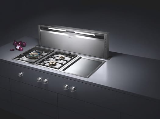 Grazie alla precisa lavorazione dell’acciaio inox da 3 mm di spessore, i piani cottura della Serie Vario 400 di Gaggenau possono essere installati completamente a filo top o in appoggio, per mettere in evidenza i loro profili al vivo e possono essere installati uno accanto all’altro creando un perfetto allineamento. Tra i piani cottura a gas, a induzione e gli apparecchi speciali possono essere inseriti fino a quattro unità di aspirazione da piano VL 414. Collegati ad un gruppo motore regolabile comodamente con un’unica manopola comandi, essi garantiscono un’aspirazione ottimale direttamente nel punto di cottura.