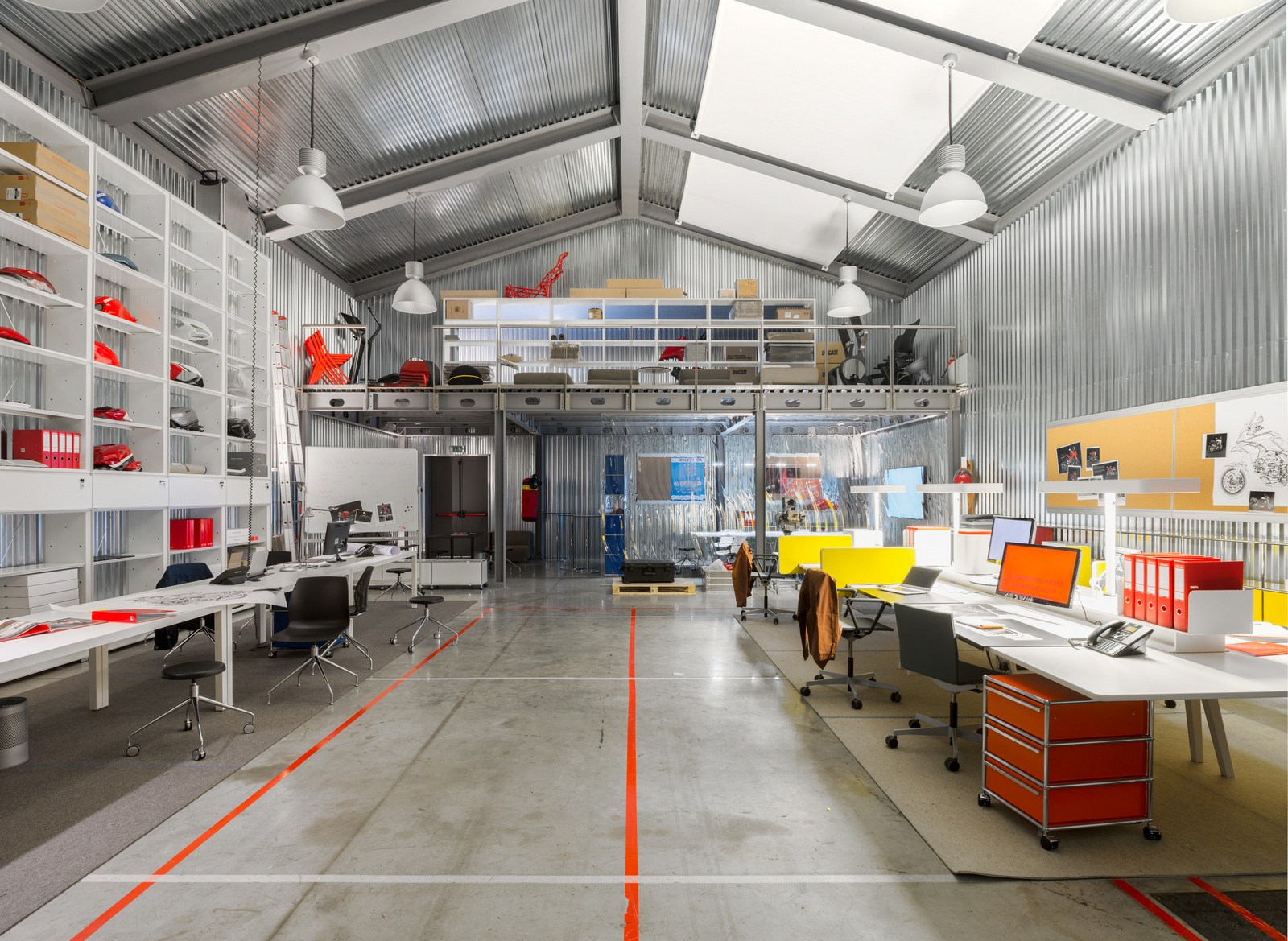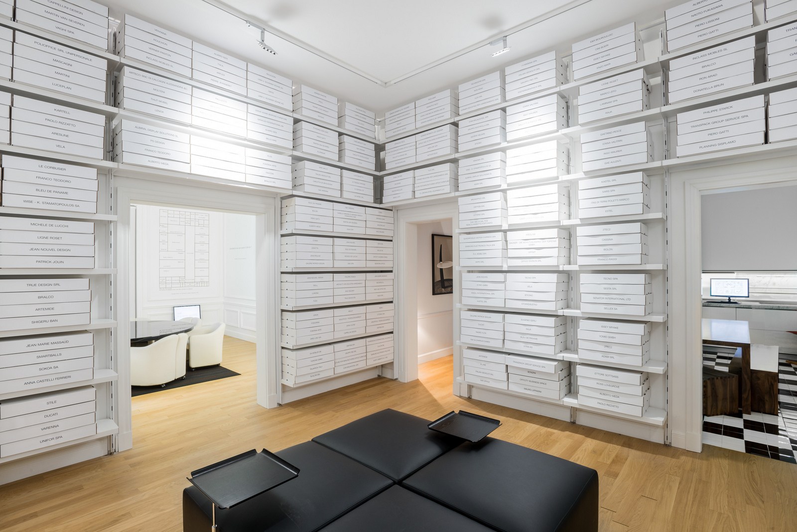 Jean Nouvel ha, inoltre, reso omaggio ai grandi maestri del design utilizzando una selezione di arredi storici, abbinati alle immagini dei luoghi per i quali questi sono stati concepiti nel passato. Una Vip lounge ha completato la ‘piccola città’ all’interno della quale hanno raccontato la propria idea di ufficio archistar tra cui Philippe Starck, Ron Arad, Michele De Lucchi e Marc Newson.
