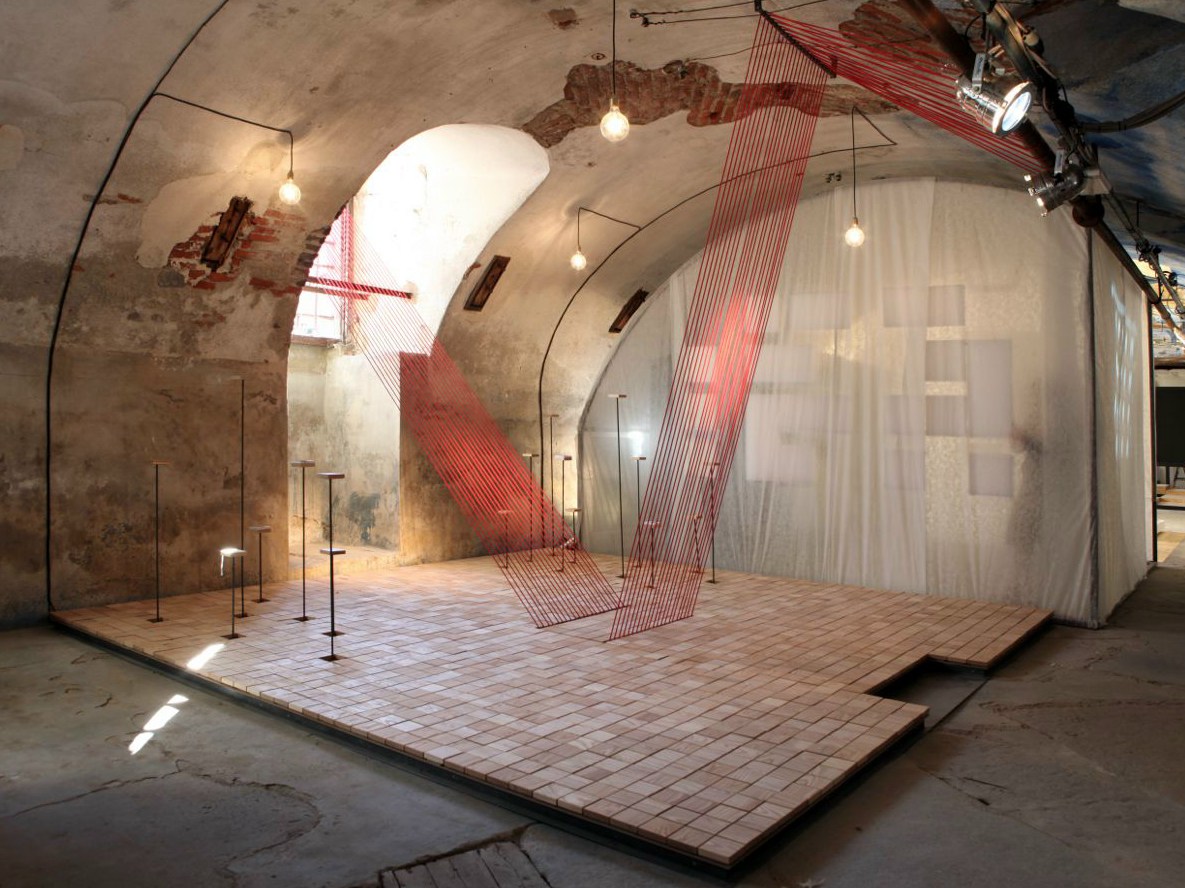 InTESSERE di Garofoli, Salierno e Vurchio torna sulla funzione originaria dell’edificio che oggi ha reciso il filo che lo legava alla città, proponendo un grande telaio fuori scala in cui forme, colori e suoni antichi riecheggiano.