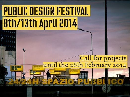 22/01/2014 – Il Public Design Festival è un festival internazionale che si occupa di design degli spazi pubblici, proponendo progetti da vivere, usare, sperimentare. Tema cardine, trasversale a tutto il festival e riconoscibile in ogni idea, progetto e intervento realizzato, è lo spazio pubblico inteso come luogo in cui vivere, da riqualificare, valorizzare, dove la città può riconoscersi come comunità.
